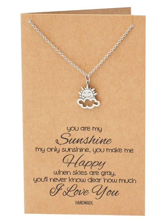 Ellen Sun and Cloud Charms Necklace, You are my Sunshine, Inspirational Quotes with Greeting Card