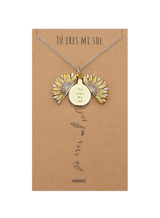 Adalee Tú Eres Mi Sol Necklace, Sunflower Locket Pendant, Spanish Engraved Gifts Jewelry Greeting Cards