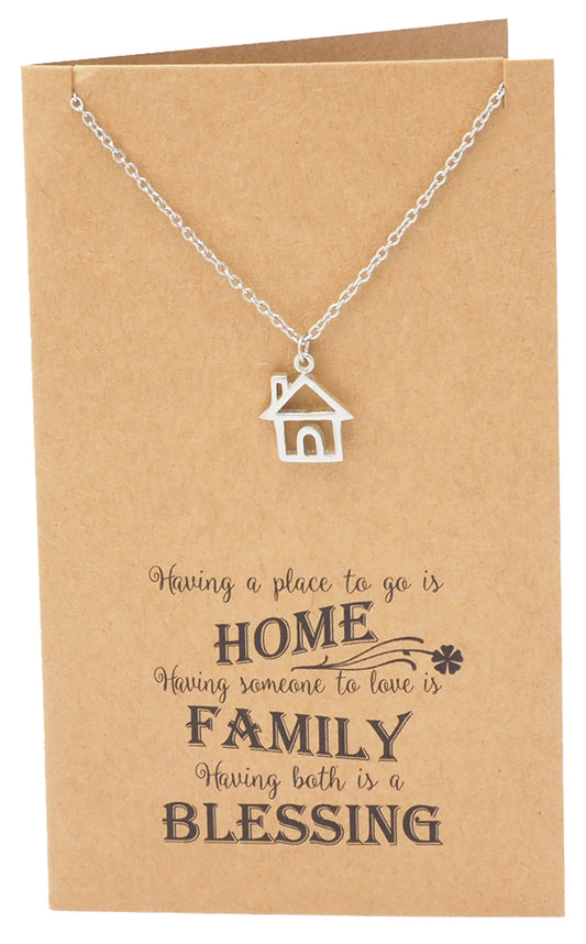 Kassidy Family Necklace with House Charm Pendant, Gifts for Mom, Sisters, Friends with Quote Card