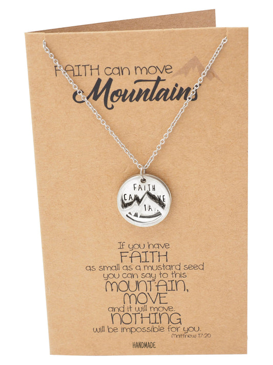 Emery Faith Necklace for Women, Mountain Pendant with Inspirational Quote, Silver Tone