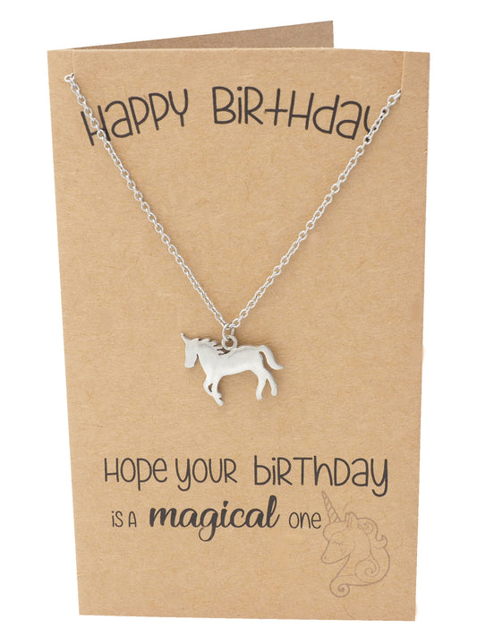 Emy Birthday Unicorn Necklace for Women, Animal Pendant with Greeting card
