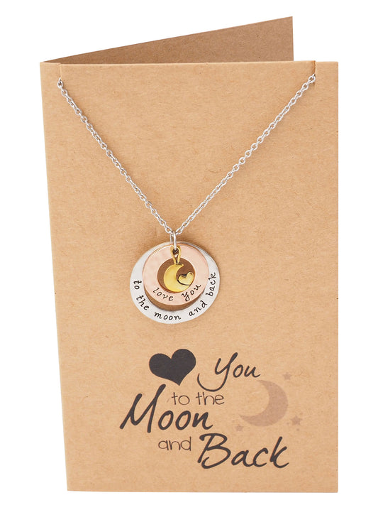Julie Heart And Moon Engraved Necklace, Gifts For Women, Birthday Gifts Comes with Sweet Quote