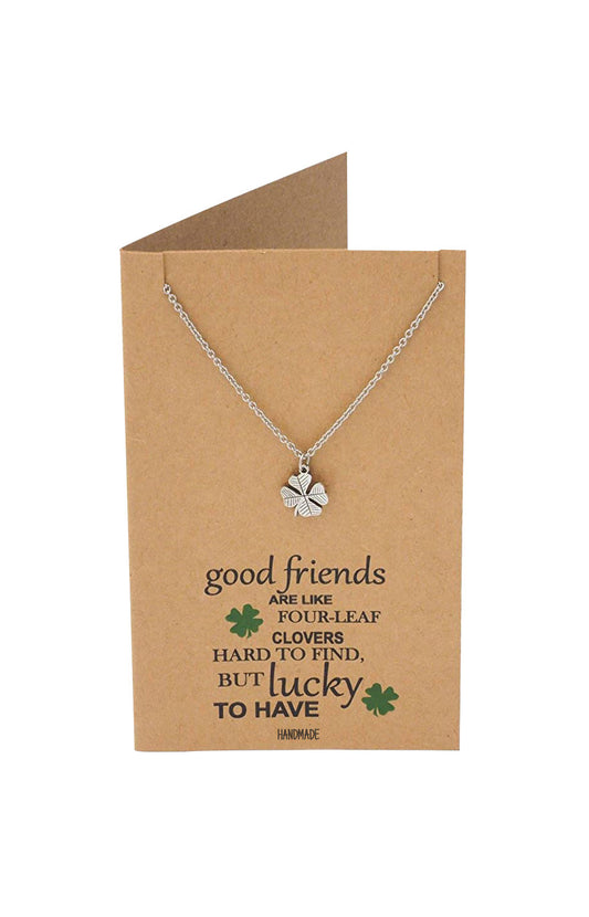 Lia Four Leaf Clover Necklace, 4 Leaf Clover Best Friend Jewelry, Rhodium Plated