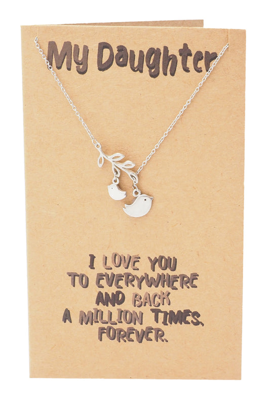Izy Mother and Daughter Bird Necklace, Gifts for Daughter, with Inspirational Quote