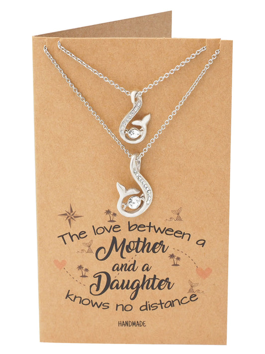 Rosita Mermaid Tail Pendant with Swarovski Crystals, Mother Daughter Set of 2 Necklaces, Inspirational Greeting Card