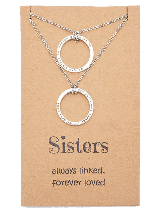 Rosanne Sisters Set of 2 Matching Necklaces with Engraved Ring Pendants, Gifts for Sisters