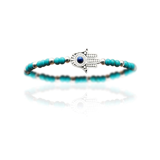 Evil Eye Bracelet, Turquoise Bracelets for Women, Hypoallergenic Sterling Silver with Anti-Tarnish, Handmade Hamsa Hand, Turquoise Jewelry for Women, 7 Inch with 2 Inch Extender, Timeless Design, Gift-Ready Packaging, USA No Hassle Warranty