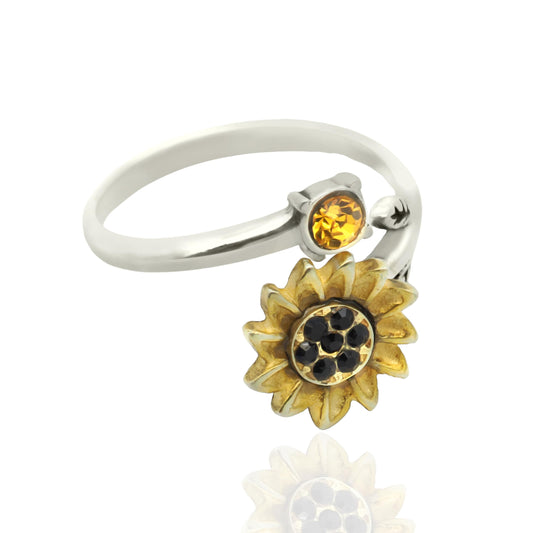 Gold-Plated Sunflower Spinner Ring - Stress Relief Fidget Jewelry for Self-Care, Friends, and Loved Ones