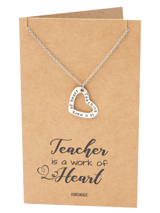 Mercia Heart Shaped Pendant Necklace - Thank You Teacher Heart Necklace, Silver Tone