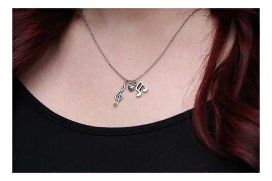 Mara Music Note Necklace, Gifts for Music Lovers, Music Jewelry, Rhodium or Gold Plated