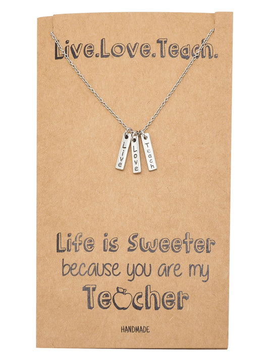 Michayla Live Love Teach Bar Pendant Necklace, Thank You Teacher Necklace