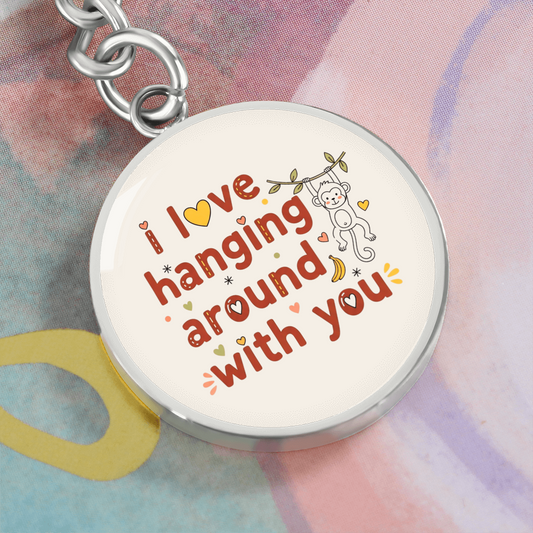 I Love Hanging Around With You Keychain – Cute Monkey Graphic Circle Keychain Gift for Partner or Best Friend