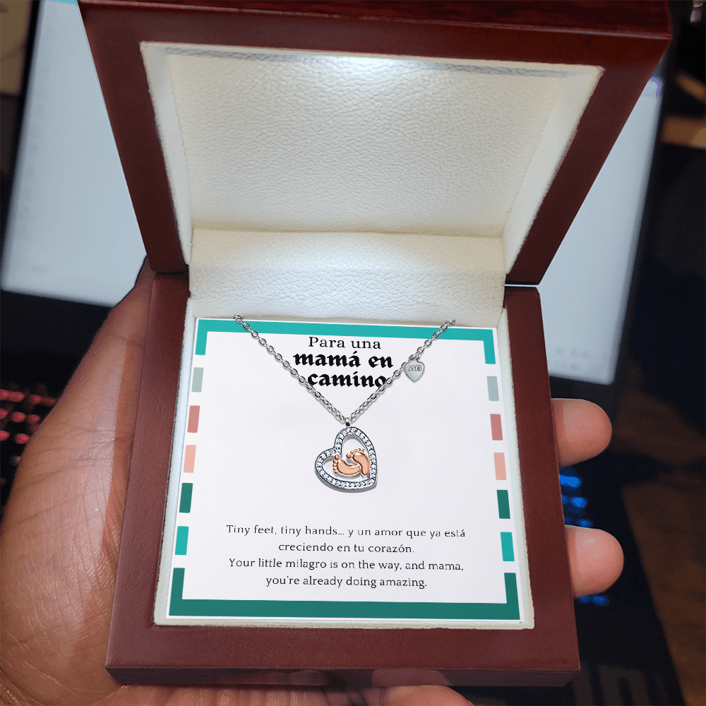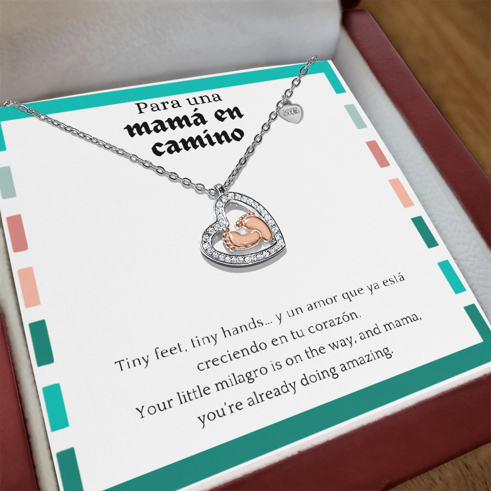 Baby Feet Heart Necklace para Mamá en Camino | Spanglish Pregnancy Gift | New Mom Necklace | Baby Shower Jewelry