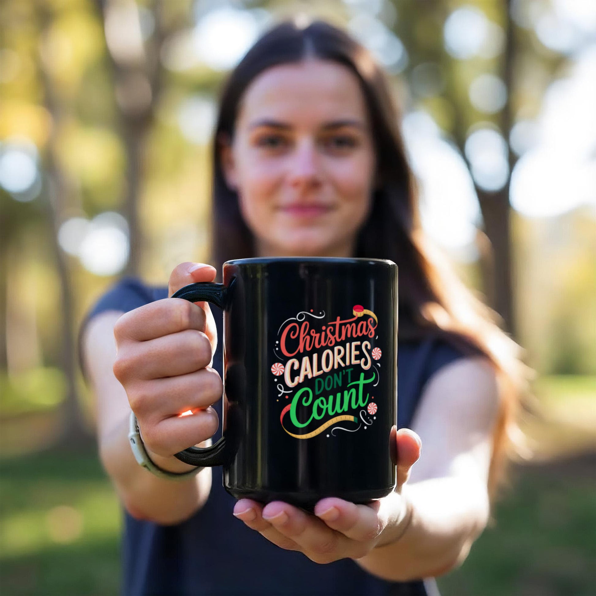 Sip your holiday cheer with this playful “Christmas Calories Don’t Count” black ceramic mug! Perfect for coffee, cocoa, or tea, it’s a festive reminder to enjoy every sweet treat guilt-free this season. Made for comfort and laughter, it’s the ultimate holiday mug for cozy mornings or office gift exchanges.