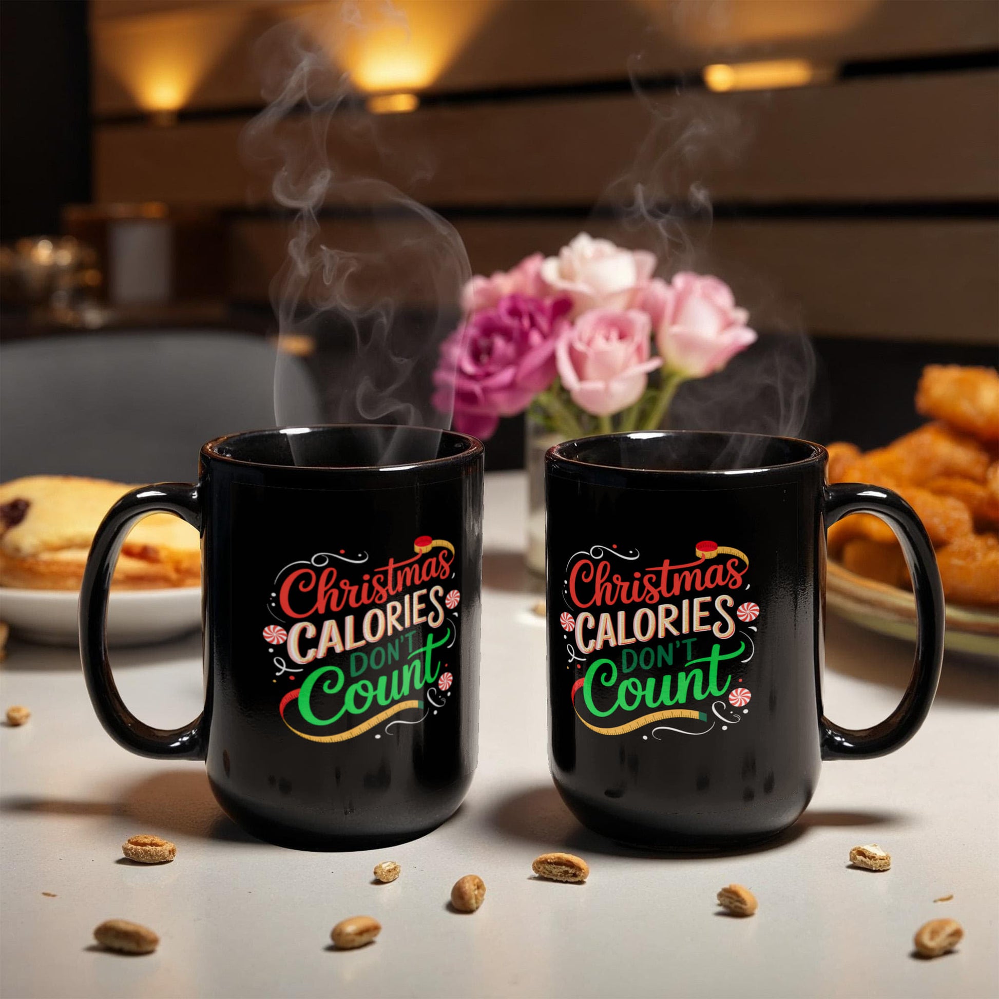 Christmas Calories Don't Count | Funny Holiday Black Ceramic Mug
