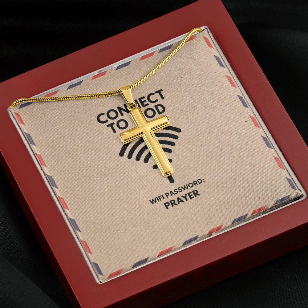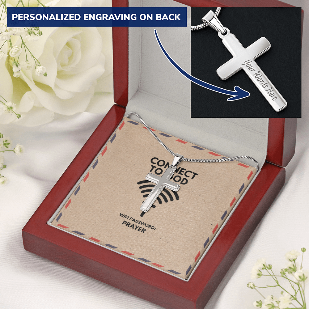 Connect to God Through Prayer - Personalized Faith Cross Necklace, Engraved Christian Gift for Men & Women