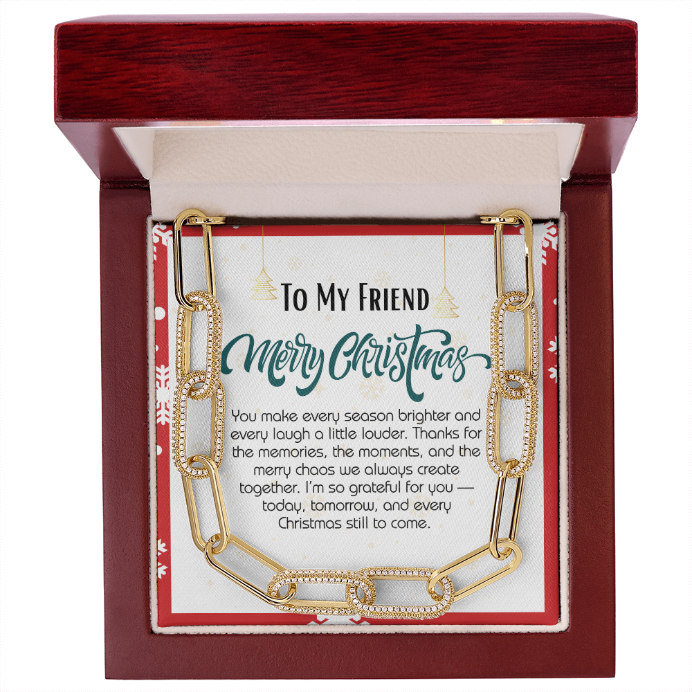Make this Christmas unforgettable with a gift that shines as brightly as the friendship you cherish. Paired with a heartfelt message card, the CZ Paperclip Chain is a stunning keepsake designed to make your special someone feel truly celebrated.