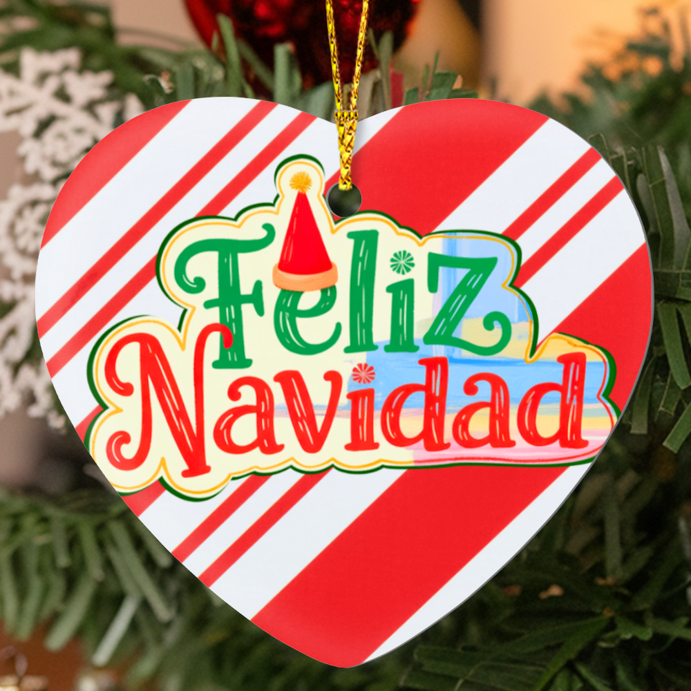Feliz Navidad High Gloss Heart Ornament | Festive Spanish Christmas Decoration Gift | Spanish Christmas Gift