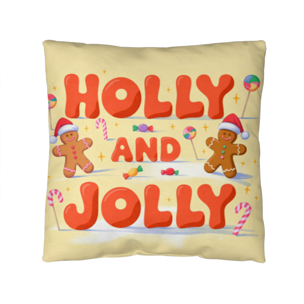 Add a sprinkle of sweetness to your holiday décor with this “Holly and Jolly” Christmas pillow! Featuring adorable gingerbread men in Santa hats, candy canes, and cheerful holiday lettering, this festive throw pillow brings warmth and joy to any room. Perfect for cozying up your sofa, bedroom, or reading nook during the most wonderful time of the year.